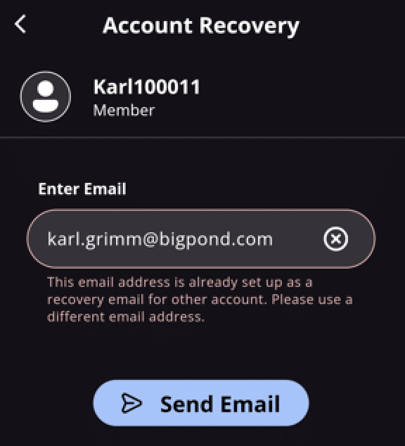 - Gebruik uw e-mailadres om het defecte account te herstellen.